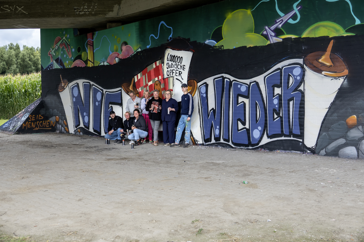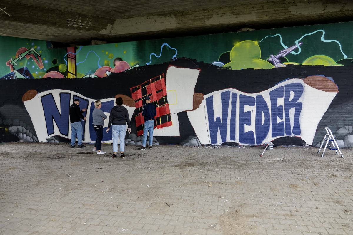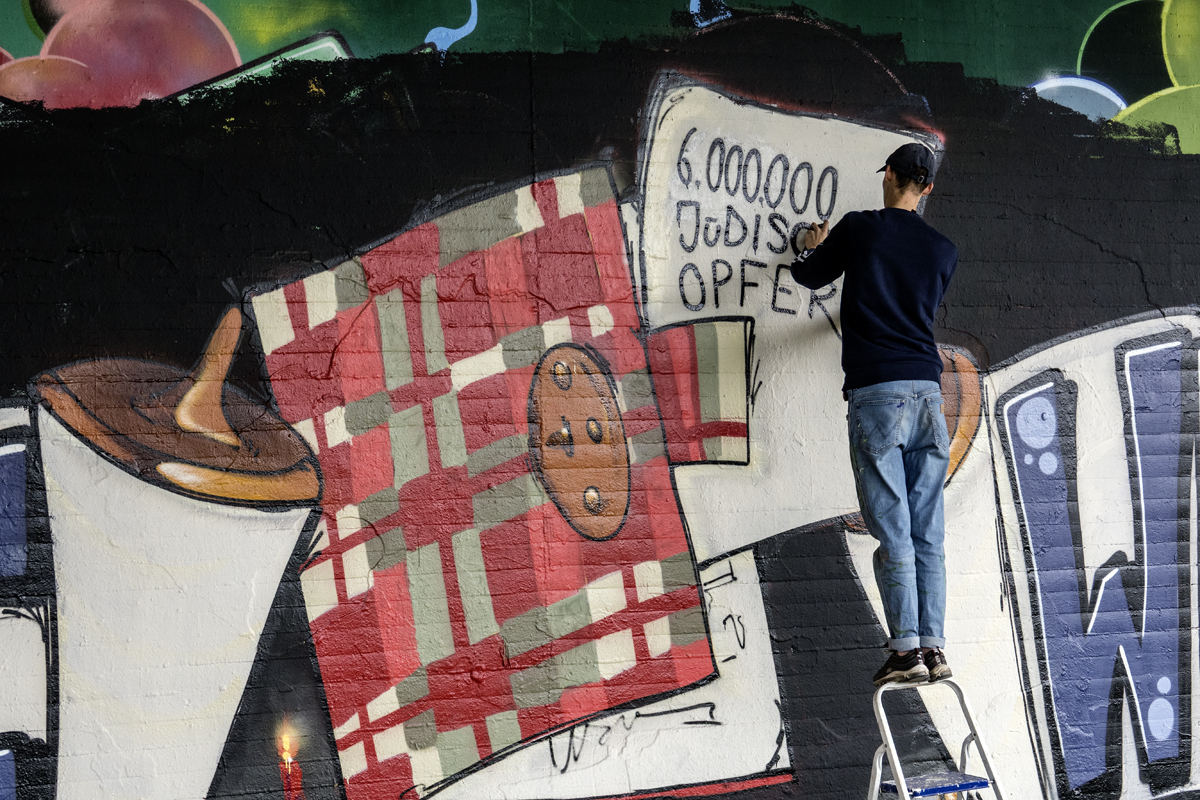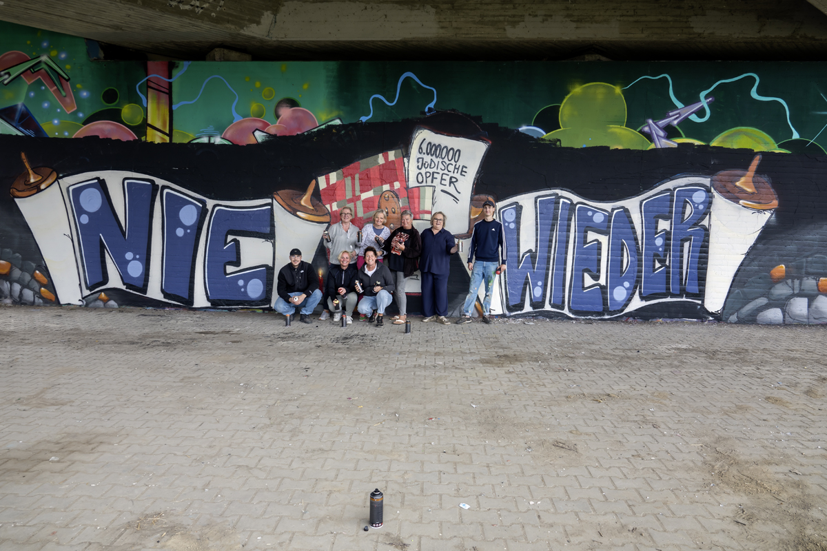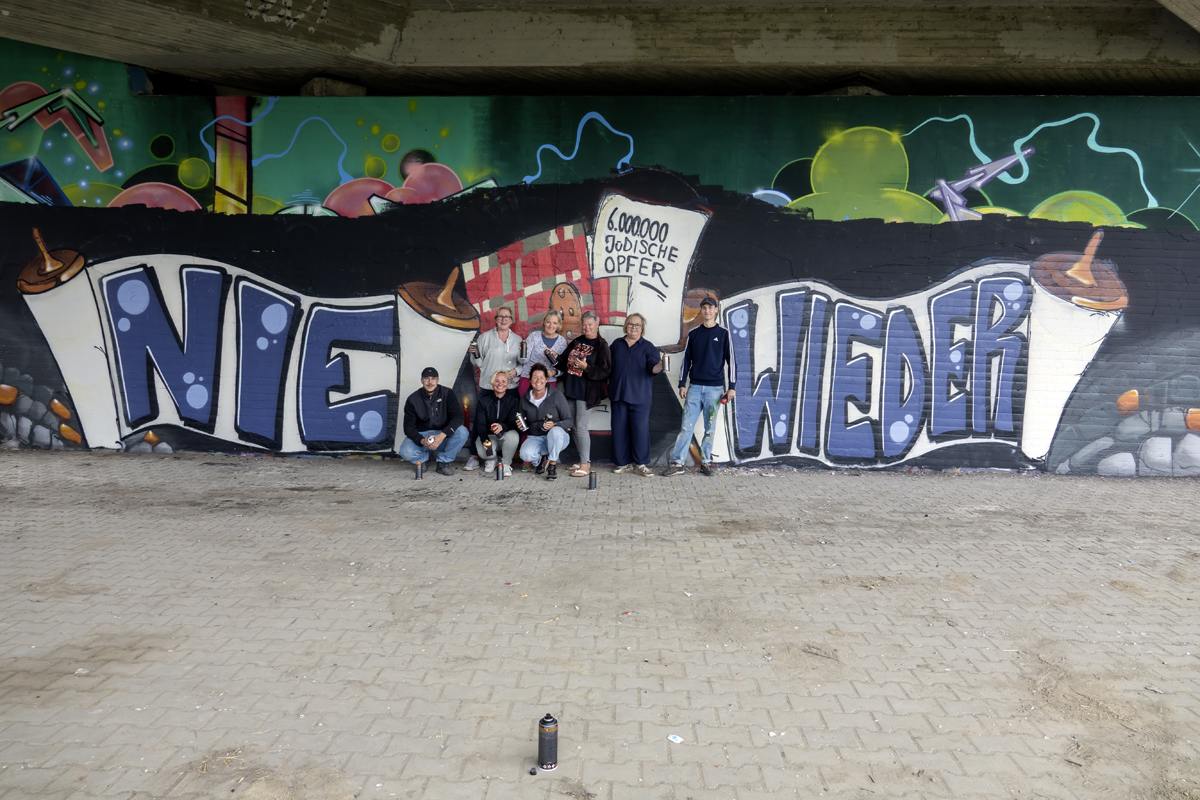 Unter der Leitung der professionellen Sprayer Axel Christiani und seinem Partner Jens Meier entstanden Motive zum Thema Antisemitismus.
