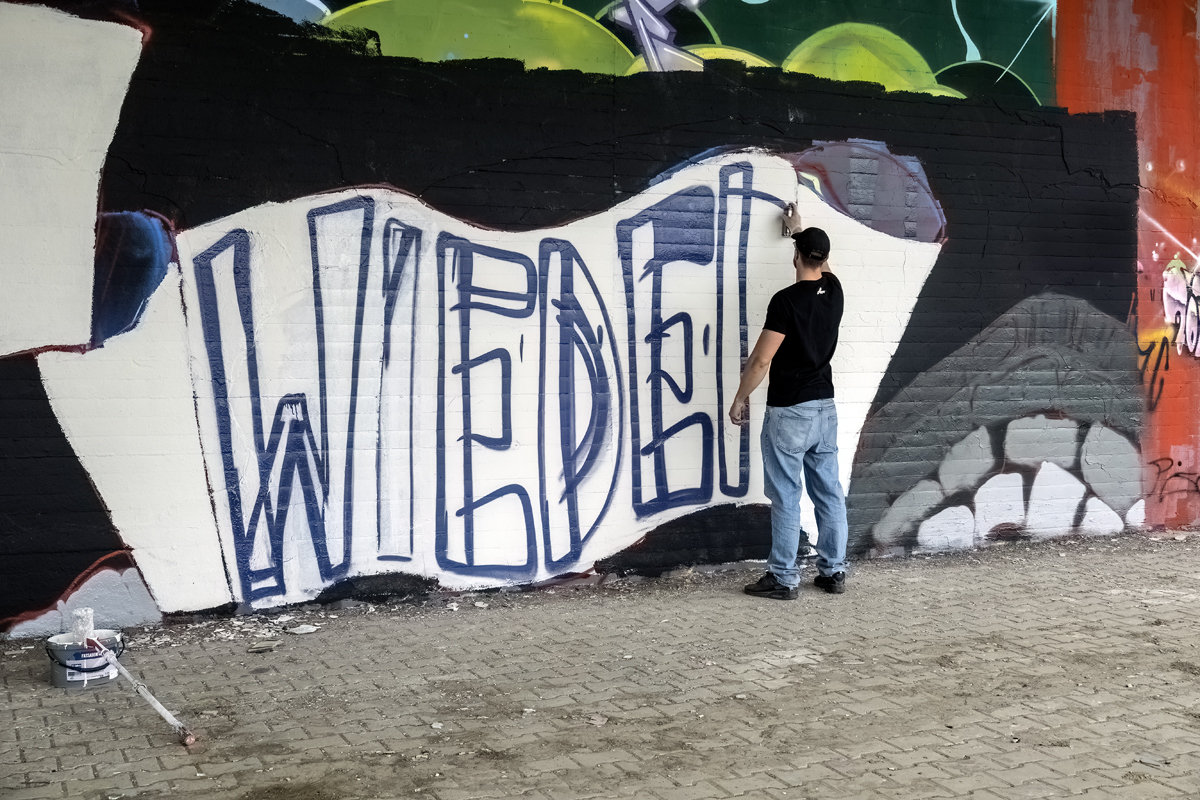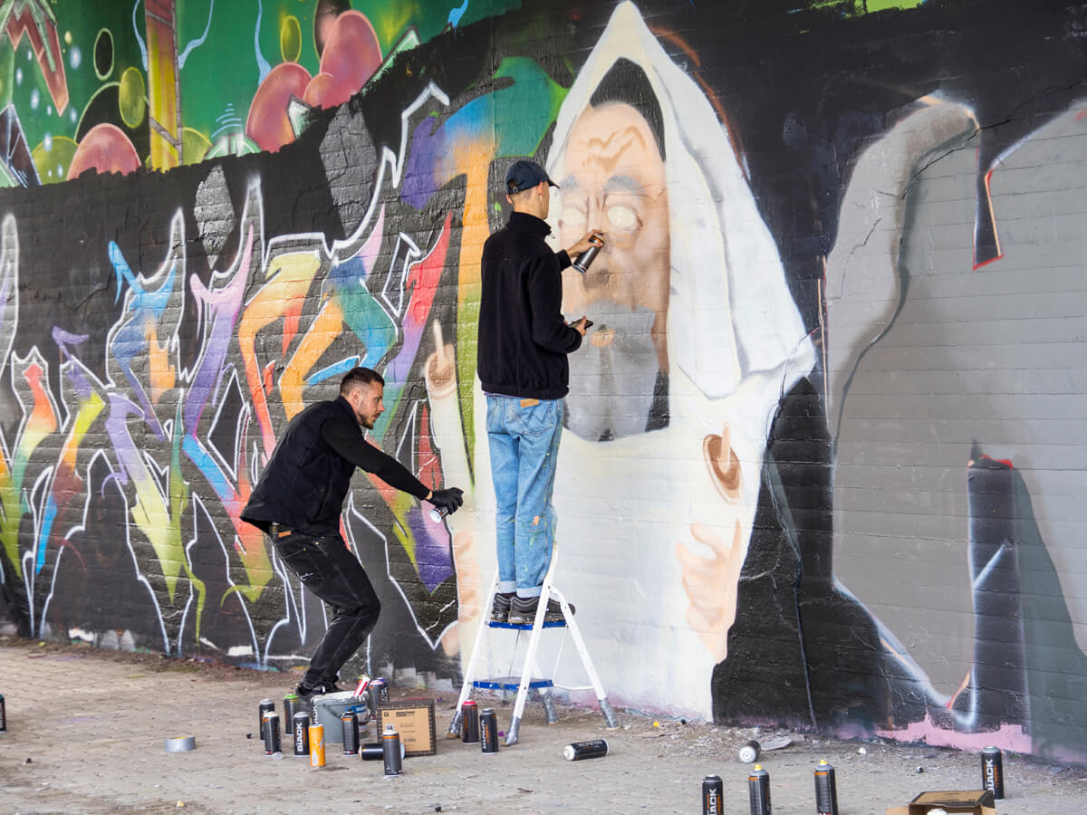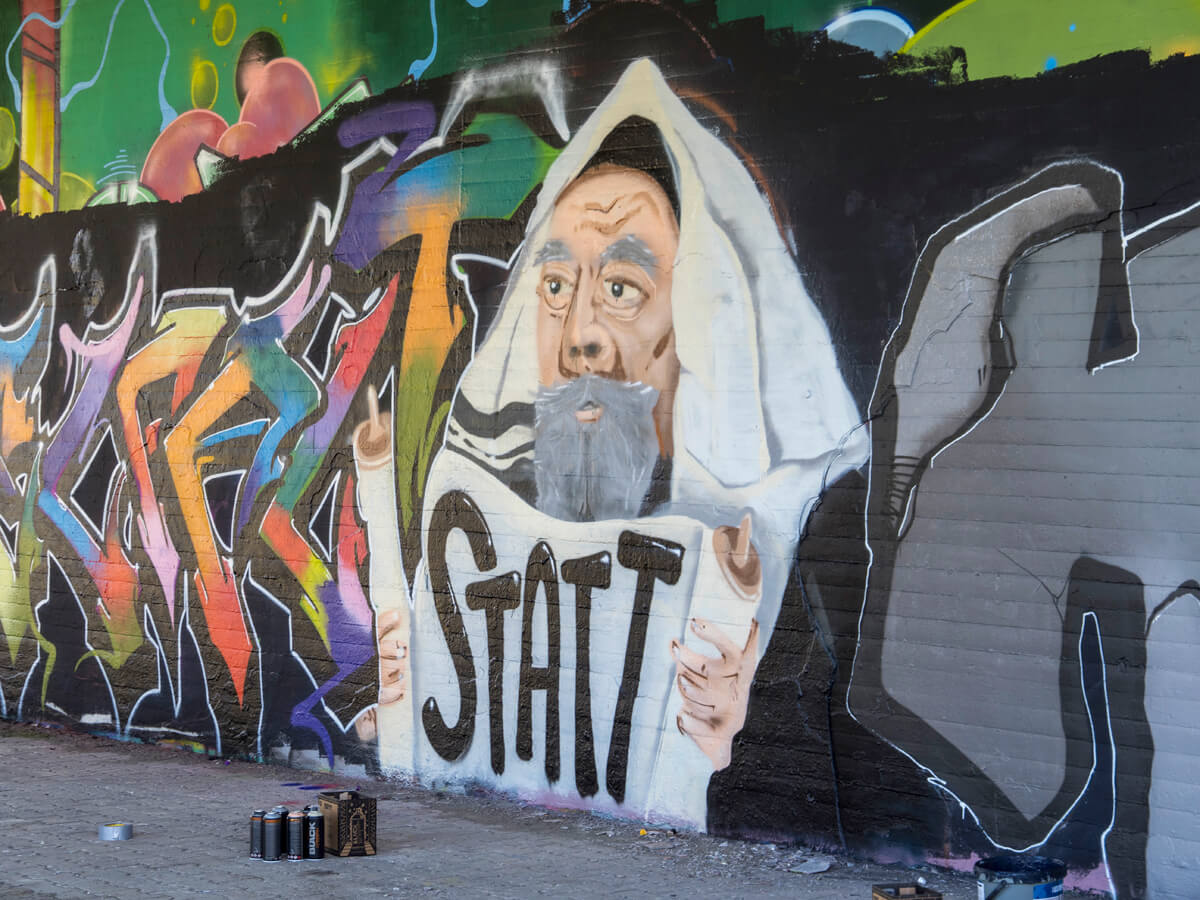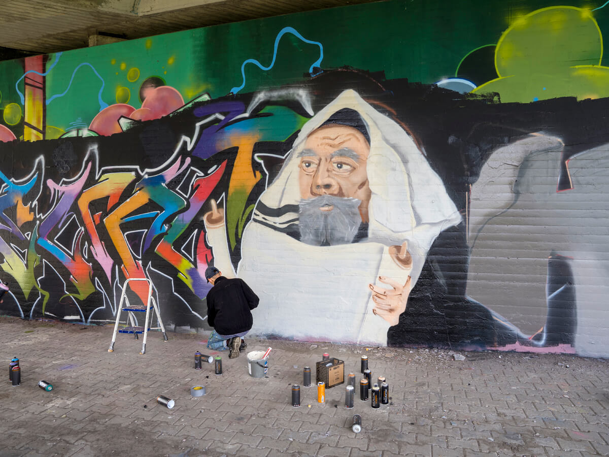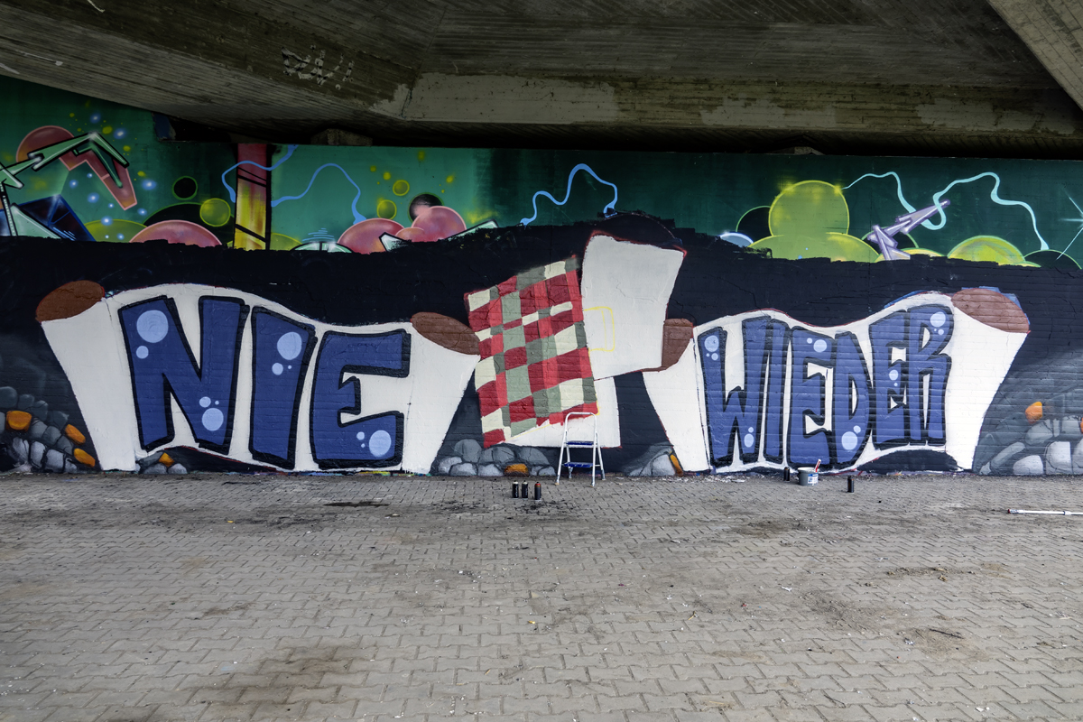 Unter der Leitung der professionellen Sprayer Axel Christiani und seinem Partner Jens Meier entstanden Motive zum Thema Antisemitismus.