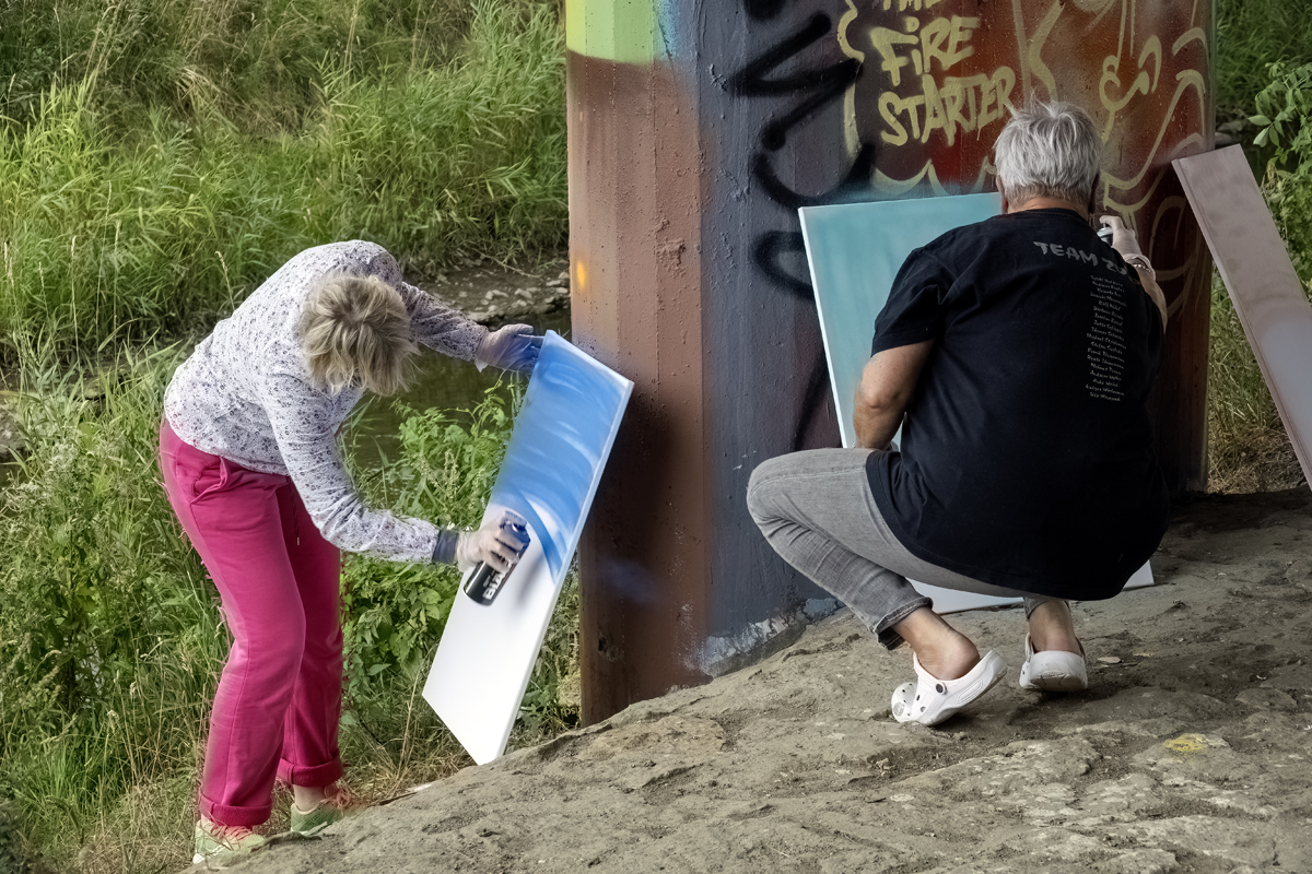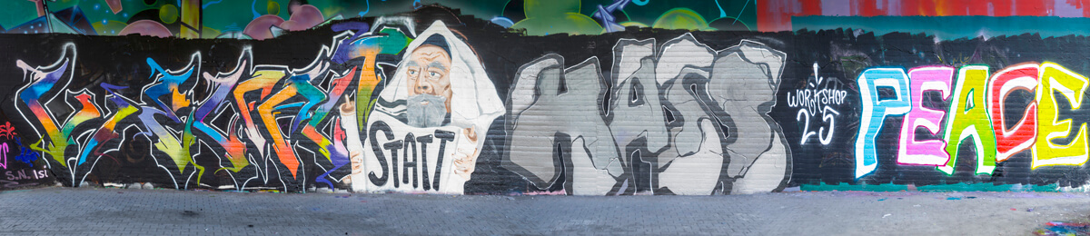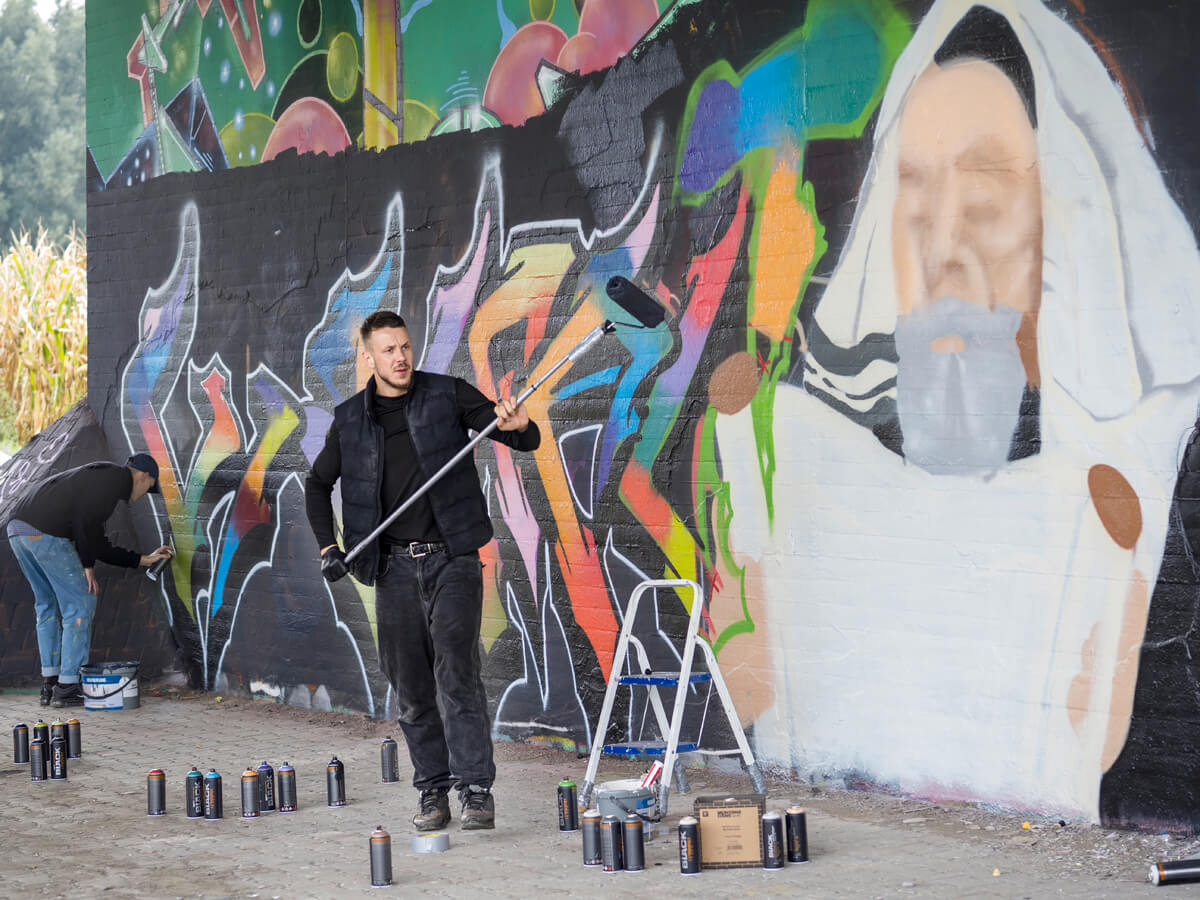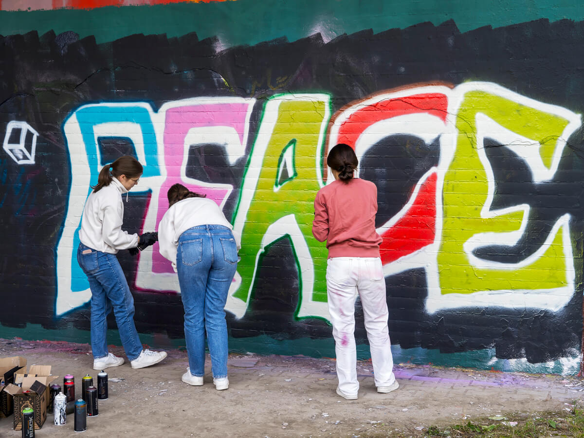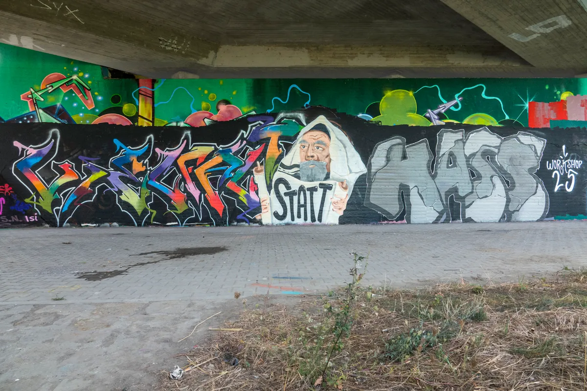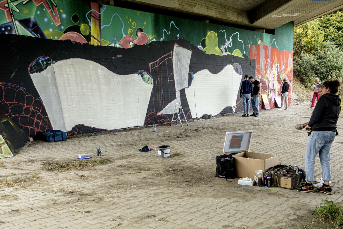 Unter der Leitung der professionellen Sprayer Axel Christiani und seinem Partner Jens Meier entstanden Motive zum Thema Antisemitismus.
